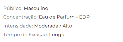 Para maior fixação, mantenha a pele sempre hidratada e nunca esfregue o perfume em contato com a pele.