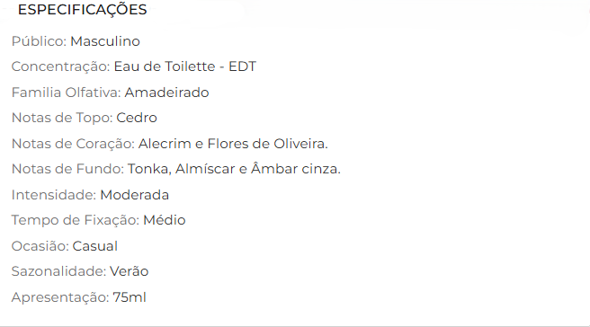 Esta fragrância expressa o poder, orgulho, ambição, força e vontade de vencer.