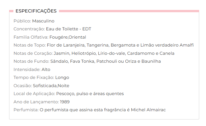 Qual o cheiro do perfume Joop? Sua fragrância fougueré oriental traz frescor elegante e marcante, com notas de topo com Flor de Laranjeira, Tangerina, Bergamota e Limão. Além disso, sua marca adocicada e jovem vem pelas notas de coração Jasmin, Heliotrópio, Lírio do Vale, Cardamomo e o toque especial de canela. Para marcar durante sua longa duração, suas notas de fundo trazem a personalidade e sensualidade do Sândalo, Fava Tonka com seu toque oriental, Patchoulli e Baunilha, intensificando seu frescor adocicado. Podemos também sentir notas de Almíscar, com toques de elegância e glamour, além da personalidade das notas de tabaco.